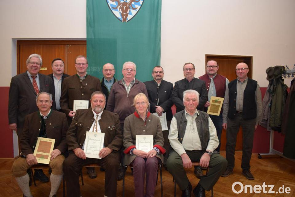 Dem Kreisvorsitzenden Burkhard Graf Beissel von Gymnich blieb es vorbehalten, verdiente Mitglieder besonders auszuzeichnen. Für 25 Jahre Dienst als Jagdhornbläser erhielt Dietmar Kraus die Ehrennadel in Gold. Bronze für 10 Jahre als Jagdhornbläser nahm Karl Hammer entgegen. 65 Jahre ist Josef Dirmeier Mitglied in der Kreisgruppe. Seit 40 Jahren sind Uwe Deeg, Max Schmidt, Gundolf Streit und Konrad Werner dabei, seit 25 Jahren Richard Götz, Konrad Hofstetter, Michael Landgraf, Ursula Nückel, Jörg Podlesny, Josef Reis, Josef Schieder, Stephan Steinbacher und Karl Zenger.