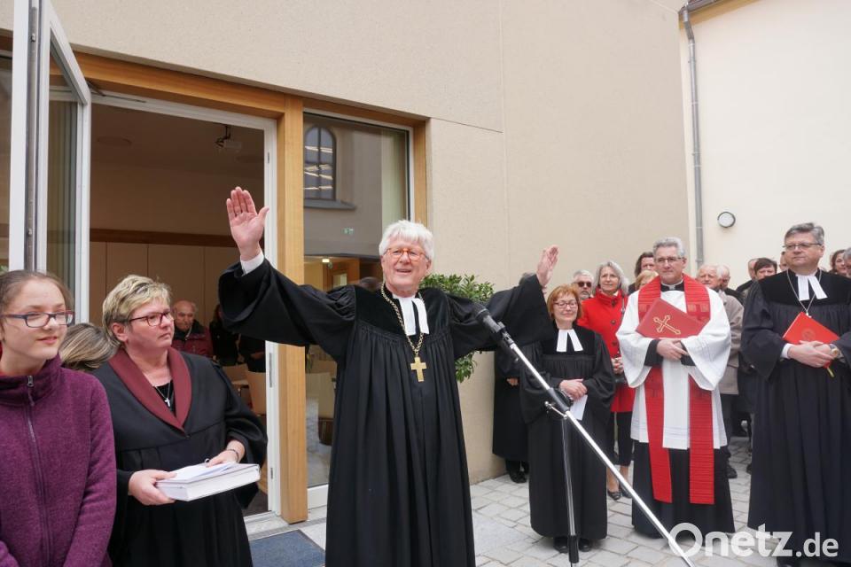 Dekan Karlhermann Schötz betonte, dass der Dekanatsbezirk und die Landeskirche "unsere kleinen Diaspora-Gemeinden nicht im Regen stehen lassen". In Nabburg, Pfreimd und Umgebung sind etwa 800 evangelische Christen zu Hause. Das Gemeindehaus, das für sie erbaut worden ist, ist nach dem lutherischen Theologen Dietrich Bonhoeffer benannt, der 1945 im KZ Flossenbürg hingerichtet worden ist. Am Sonntag fand parallel zur Einweihung des Gemeindehauses ein Gedenkakt zum 74. Jahrestag der Befreiung des Konzentrationslagers Flossenbürg in der heutigen Gedenkstätte statt. Für Bedford-Strohm steht Bonhoeffer für die "Authentizität seines Glaubens".