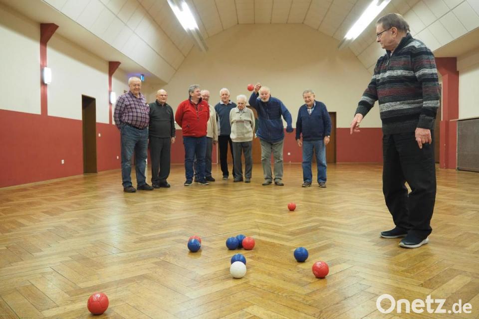 "Dass müssen Sie ausprobieren", sagt Karl Böhm, der sich im TV 1880 Nabburg um die Organisation der Treffen kümmert. Wer sich für das Spiel mit den Lederkugeln interessiert, bekommt hier schnell ein rotes oder blaues Exemplar in die Hand gedrückt. Jetzt heißt es gut zielen, damit die eigene Kugel möglichst nah an der weißen Kugel landet und damit Punkte fürs Team einfährt. "Es geht bis 13, dann ist das Spiel aus, das ist so ähnlich wie beim Eisstöckeln", erklärt Böhm. Er übernimmt die Schiedrichter-Rolle, seit er bedingt durch eine Krankheit die Kugel nicht mehr so richtig festhalten kann. Hervorgegangen ist die Boule-Gruppe ursprünglich aus dem Versehrtensport. "Da gab's noch Geld von der Krankenkasse", erinnern sich die Veteranen.