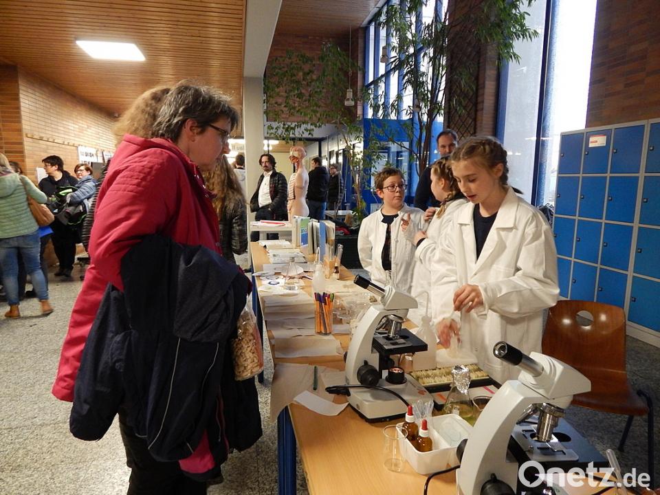 Nach der Eröffnung durch Schulleiter Christian Schwab wurden die zahlreichen Gäste in der Aula mit einem sehenswerten Ausschnitt aus dem aktuellen „Stück über das Wünschen“ des Unterstufentheaters auf den Nachmittag eingestimmt. Danach durften die Besucher zunächst auf eigene Faust durch die neu konzipierte „Messestraße“ schlendern und im Gespräch mit Lehrkräften und der Schulleitung einen ersten Eindruck des abwechslungsreichen Bildungsangebots gewinnen. Schnell war eine Stunde verflogen und ein Trompetensignal rief die interessierten Schüler zu den „Schnupperstunden“ in den Fächern Latein, Englisch sowie Natur und Technik.