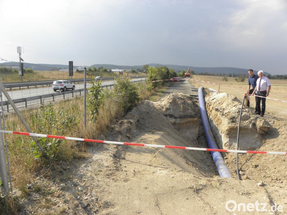 Bei einem Baustellentermin informierten Zweiter Bürgermeister Kurt Koppmann und Thomas Prey aus der Bauabteilung des Rathauses darüber, dass die Frage erst beantwortet werden kann, wenn das momentan laufende Anlegen von Suchschlitzen abgeschlossen ist. Wesentlich schneller und auch kostengünstiger würde das Einlegen der neuen Kunststoffrohre im Pflugverfahren zwar vonstattengehen, aber dazu muss unbedingt der Verlauf der alten Leitung genau bekannt sein, damit sie den Bauarbeitern nicht noch einmal in die Quere kommt. "In der offenen Bauweise braucht man für etwa 400 Meter drei Wochen, im Pflugverfahren ginge das auf einen Tag", veranschaulichte Prey den Unterschied. Somit ist im Augenblick auch nicht konkret absehbar, wann das Projekt fertig ist. Für Mitte Oktober war der Abschluss angepeilt - jetzt geht man davon aus, dass es mindestens vier Wochen später werden könnte.