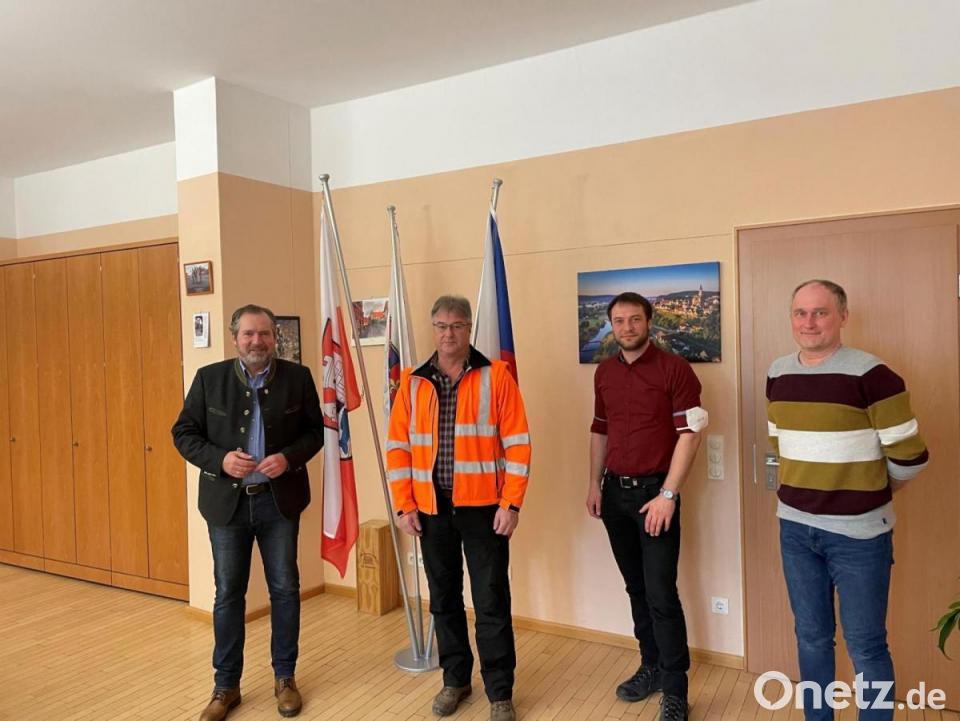 Zu einer kleinen Feierstunde lud der Bürgermeister der Stadt Nabburg, Frank Zeitler, den Bauhofleiter Rudi Scharf ins Rathaus ein. Denn Scharf ist seit 25 Jahren im öffentlichen Dienst tätig. Bei der Feier betonte Zeitler, wie positiv sich der Bauhof unter der Leitung von Rudi Scharf entwickelt habe. Nach seiner Maurerlehre bei der Firma Maierhofer und 15 Monaten Bundeswehr war Scharf zunächst erneut bei der Firma Maierhofer tätig. Am 1. Mai 1998 begann er dann seine Tätigkeit als Bauhofleiter der Stadt Nabburg. Übrigens war Rudi Scharf der erste Mitarbeiter, den der Leiter des Personalwesens im Rathaus, Bernhard Eckl, eingestellt hat. Geschäftsstellenleiter Thomas Prey lobte die gute Zusammenarbeit mit dem Bauhof. Es genüge ein Anruf und die Verwaltung habe die Sicherheit, dass anfallende Dinge erledigt werden. Rudi Scharf gab das Lob weiter an seine Mitarbeiter. Dass Nabburg einen modernen Bauhof auf dem neuesten Stand der Technik habe, sei ein großes Verdienst der engagierten Männer und Frauen, die dort arbeiten, betonte er bei dieser Gelegenheit.
