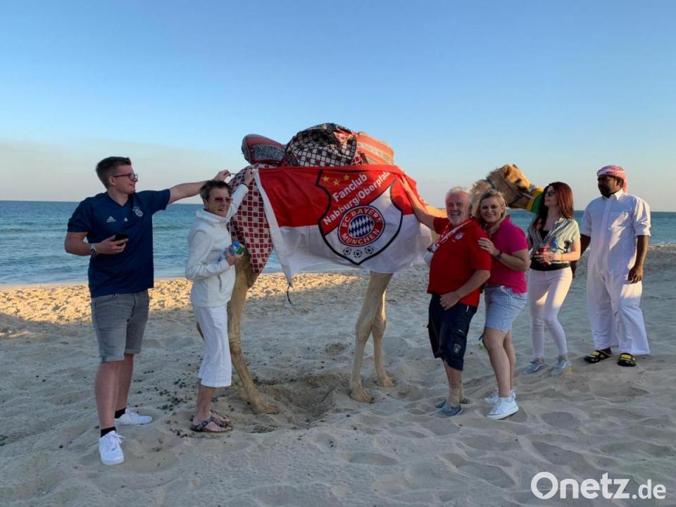Die ganze Tour machte tierisch Spaß: Am Freitag landen einige Leute vom Bayern-Fanclub Nabburg/Oberpfalz wieder in heimischen Gefilden. Eine Woche waren sie beim Wintertrainingslager des FC Bayern in Katar dabei. Fanclub-Boss Bernd Hofmann hatte das Programm in dem Land auf der arabischen Halbinsel zusammengestellt. Dazu gehörten viele Ausflüge wie eine Schifffahrt, der Besuch einer Falknerei oder eine Safari, bei der auch Kamele zu Bayern-Fans wurden. Im Mittelpunkt standen aber die Besuche der Trainingseinheiten der Bayern-Profis. Natürlich gab es Selfies mit den Kickern und dem neuen Bayern-Vorstand Oliver Kahn. "Die Nähe der Stars zu den Fans war einmalig", schrieb Hofmann schon aus dem Wüstenstaat. "Gastfreundlichkeit und Herzlichkeit ebenso." Die Nabburger hatten bei der ganzen Tour einfach keine Scheu vor großen Tieren - so oder so.
