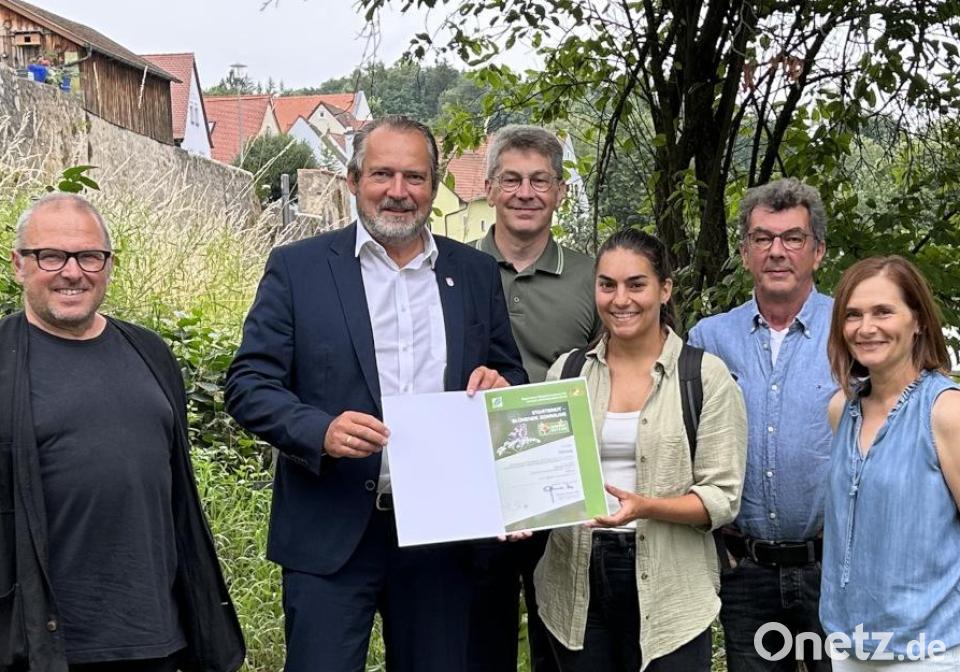 Um den Ablauf zu besprechen, fand vor wenigen ein Auftakttreffen mit den am Projekt beteiligten Personen statt. Dabei überreichte die Blühpaktberaterin an der Regierung der Oberpfalz, Isabella Hollweck, an Bürgermeister Frank Zeitler einen symbolischen Scheck über 5000 Euro. Bei der Umsetzung stehen Markus Kurz vom Verein Naturpark Oberpfälzer Wald, Wolfgang Grosser, Gartenfachberater am Landratsamt, und Eva Spießl-Mayr, Streuobstberaterin bei der Regierung, mit Rat und Tat zur Seite.