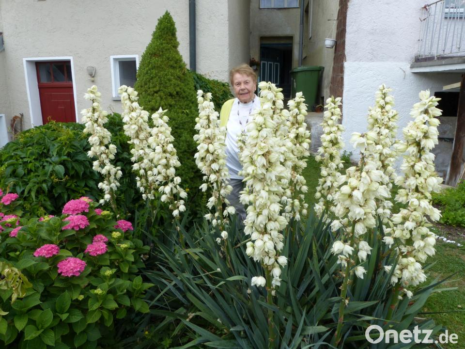 Ida Sobiegalla ist stolz auf ihre Palmlilie, die Sohn Gerd vor 40 Jahren aus Mexiko mitgebracht hat. Sie ist genügsam, bienenfreundlich und braucht nicht viel Wasser", erzählt Ida Sobiegalla. "So üppig geblüht hat sie noch nie", schwärmt die Nabburgerin und zählt 13 neue Rispen.