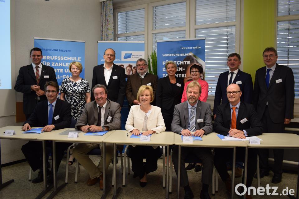 Die Ausbildungszeit erstreckt sich über viereinhalb Jahre. Unternehmen erhalten so praxisnah ausgebildete Akademiker, die keine Einarbeitungszeit benötigen. Junge, motivierte Fach- und Führungskräfte werden so bereits früh an das Unternehmen gebunden. Das Duale Studium in der Oberpfalz startet mit dem Schuljahr 2019/20. Zur Unterzeichnung der Kooperationsverträge hatten sich alle beteiligten Fachstellen in den Räumen Berufsschule eingefunden und wurden von Studiendirektorin Rosina Pimmer, begrüßt. Von Seiten der OTH Amberg-Weiden war die Vizepräsidentin Professor Dr. Christiane Hellbach und von der OTH Regensburg deren Präsident Professor Dr. Wolfgang Baier anwesend. Die Regierung der Oberpfalz war durch leitenden Regierungsschuldirektor Thomas Unger und die IHK Regensburg durch deren Bereichsleiter Ralf Kahl vertreten. Das Berufliche Schulzentrum Oskar-von Miller Schwandorf repräsentierte Oberstudiendirektor Ralf Bormann. Mit ihrer Unterschrift setzten diese fünf Protagonisten die Kooperationsverträge in Kraft.