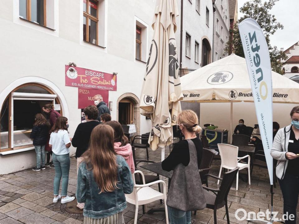 So ein bisschen Regen kann unsere Leser in Nabburg und Umgebung nicht von einer leckeren Portion Eis abhalten. Am Dienstag machte die Eis-Tournee von Oberpfalz-Medien Halt in Nabburg am Eiscafe "Tre Scalini". Keine 20 Minuten hatten Marina Sigritz, Lukas Meister und Nathalie Frouz von Oberpfalz-Medien ihren Stand aufgebaut, da waren schon 50 Gutscheine für 100 Eiskugeln weg. Zeitweise verteilten sie die Gutscheine zu dritt. Opas und Omas mit ihren Enkeln, Familien und Menschen aller Altersklassen standen teils bis auf die Straße, um sich ihre zwei Kugeln und vielleicht gleich noch eine Zeitung abzuholen. Die Aktion war ein Erfolg. Denn zwischen 11 bis 13 Uhr gingen laut Sigritz 380 Kugeln Eis über den Tresen.