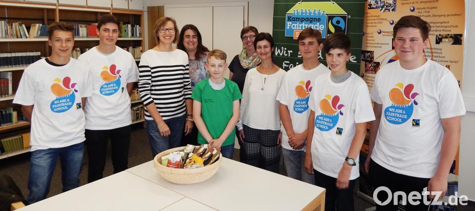 Das Trans-Fair-Team überprüft in einem zweijährigen Turnus, ob alle Kriterien erfüllt sind und der Status "Fairtrade-School" noch gültig ist. Zu diesen Kriterien gehören unter anderem ein zweimaliges Treffen des Schulteams im Schuljahr und die Planung und Durchführung eines fairen Projekts an der Schule. In diesem Schuljahr fand ein faires Frühstück mit den achten Klassen statt. Dabei informierten sich die Schüler, welche Speisen traditionsgemäß auf dem Frühstückstisch einer Produzentenfamilie zu finden sind, und brachten diese in Form einer Präsentation ihren Mitschülern näher. Im Anschluss daran ging es an die Praxis. In der Schulmensa wurden von der Schülerfirma unter Anleitung der Ernährungsberaterin und Vorsitzenden des Elternbeirats sowie des Fördervereins, Johanna Baumann, zubereiteter Quinoa-Brei, verfeinert mit allerlei Früchten und Nüssen, und fair gehandelter Orangensaft angeboten. Des weiteren erinnerten die Q11-Schüler des Schulteams in Form einer Powerpoint-Präsentation an die Anfänge der Schülerfirma, die 2011 aus einem P-Seminar heraus entstand.