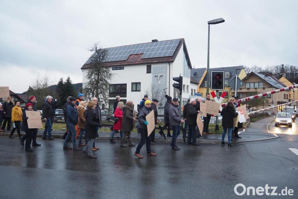 "Die Trasse in ihrem Lauf hält weder Ochs noch Esel auf", stand da auf Wellpappe-Schildern zu lesen oder "Der Sanka vor der Schranke steht, für den Kranken wird's zu spät". Andere hatten gereimt: "Wenn das rote Licht angeht, weißt du, dass du länger stehst." Gemeint war der schienengleiche Bahnübergang in Nabburg, für den seit elf Jahren ein Planfeststellungsverfahren läuft. "Planfeststellung sofort - Baubeginn noch heuer", lautete auch das Motto der Protestkundgebung, zu der Bürgermeister Armin Schärtl (SPD) am Freitag aufgerufen hatte. Die Botschaft: In Nabburg ist man mit der Geduld am Ende. Auch Schärtls Stellvertreter Kurt Koppmann (ÜPW) und Heidi Eckl (ÖDP) sowie Fraktionssprecherin Irene Ehemann (FW) und Stadtrat Helmut Ertl bekräftigten die Forderung nach einer schnellen Lösung bei der Kundgebung, die mit einem Spaziergang an die verhasste Schranke endete .