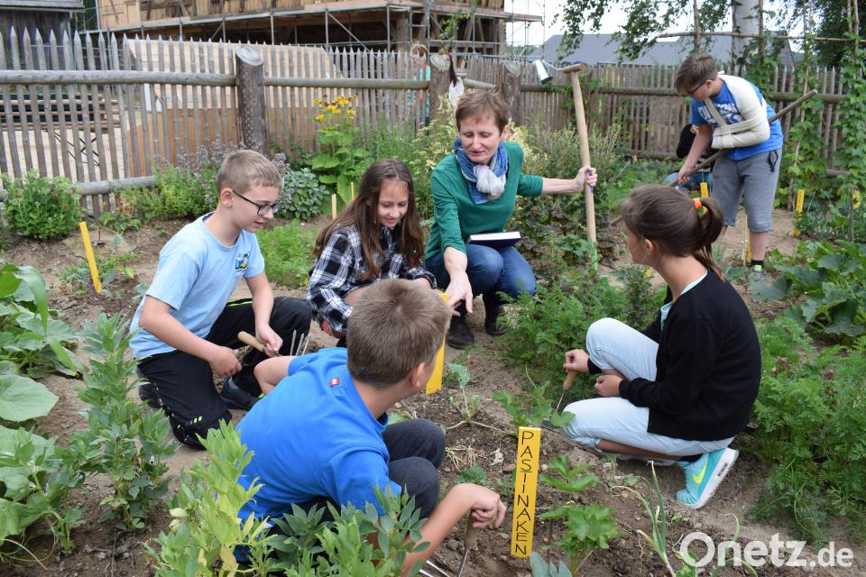 Die Schüler der 5. Klasse der Landgraf-Ulrich-Schule in Pfreimd und die Schüler des Sonderpädagogischen Förderzentrums Nabburg betreuen gemeinsam den Schulgarten im Oberpfälzer Freilandmuseum. Umweltbildung ist heute wichtiger den je. Oft fehlt die Sensibilität oder einfach das nötige Wissen, um bestimmte Zusammenhänge in der Natur begreifen zu können. Genau dieses Defizit will das Gartenprojekt beseitigen. Wie so vieles, drohte auch dieses vorbildliche Projekt an der Bürokratie zu scheitern. Die "Umweltbildung Bayern", die bisher die finanzielle Ausstattung übernommen hatte, ist für die Weiterführung nicht mehr zuständig, weil dort nur innovative Projekte gefördert werden. Es lag aber im Interesse aller Beteiligten, diese Projekt nicht untergehen zu lassen. In dieser misslichen Lage waren der Museumsverein und der Raiffeisenförderverein die Retter in der Not. Dank ihrer Unterstützung konnte das Projekt weitergeführt werden. Zum Projekttag waren nun alle Förderer eingeladen. Museumsleiterin Dr. Birgit Angerer und stellte nicht ohne Stolz ihr Team vor, das großartige Arbeit geleistet hat. Ein besonderer Glücksfall für das gesamte Projekt ist die Leiterin Bettina Kraus. Wer kann schon auf eine Gärtnerin verweisen, die bayerische Geschichte studiert hat? Dazu kommen noch Johanna Baumann, eine versierte Ökotrophologin, Annegret Hottner von der „Arche Noah“ und Anna Schmittner, eine erfahrene Hauswirtschafterin.