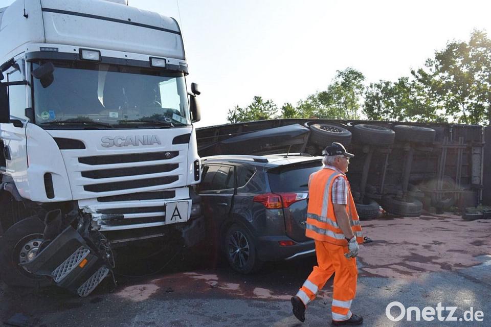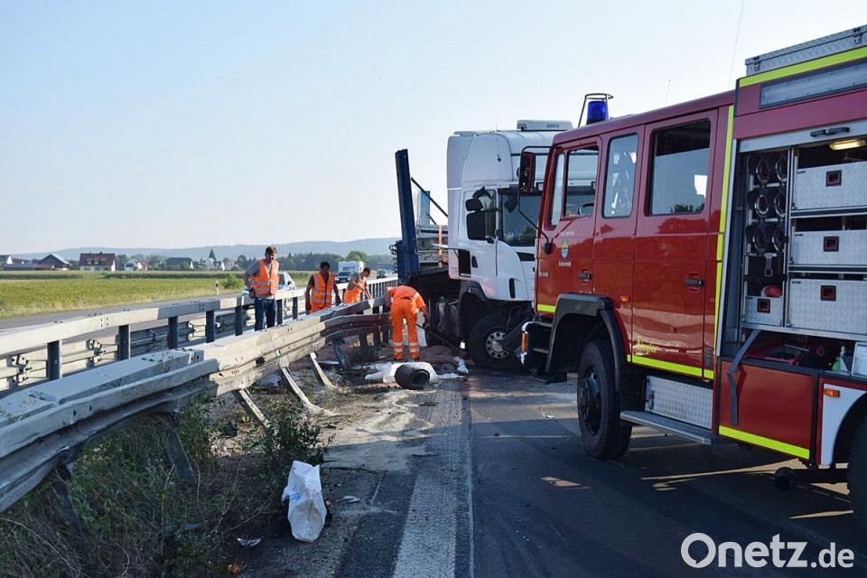 Die Autobahn war aufgrund des Unfalls bis in die Mittagszeit in Richtung Norden komplett gesperrt. Der umgestürzte Sattelanhänger war mit Gerüstteilen beladen, die umgeladen werden mussten. Erst gegen die Mittagszeit konnte der Verkehr zumindest einspurig an der Unfallstelle vorbeigeleitet werden. An den beteiligten Fahrzeugen entstand nach Polizeiangaben ein Schaden in Höhe von 160 000 Euro.