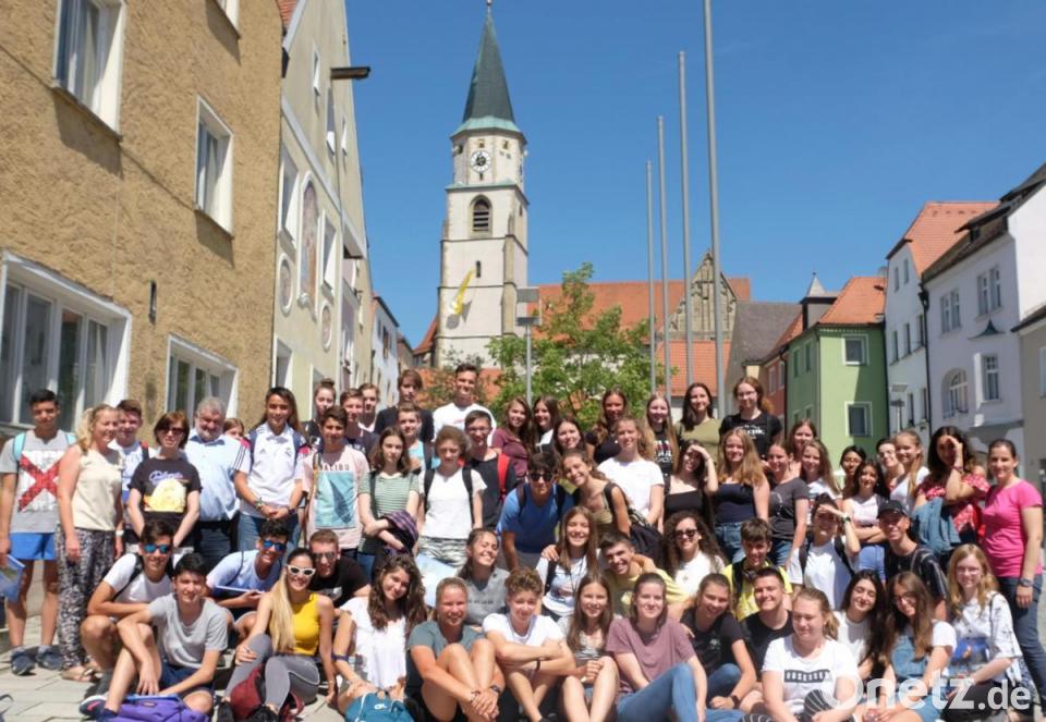 Die spanischen Schüler der 9. Jahrgangsstufe des Gymnasiums Les Juan de Avilan der Stadt Ciaded Real sind bis 29.Juni Gäste am JAS- Gymnasium Nabburg. Bürgermeister Armin Schärtl (Fünfter von links) hieß die 14- bis 15-Jährigen mit den Gastgebern und ihren Lehrkräften in der Stadt willkommen.