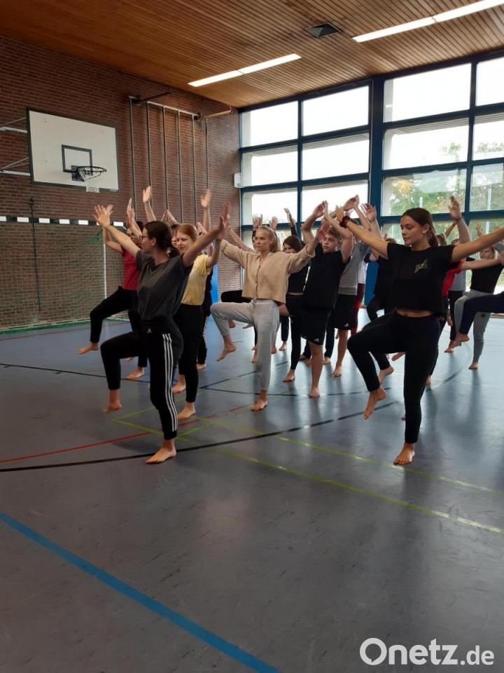 Als sich die Schüler in der kleinen Turnhalle einfanden, waren die Gefühle noch etwas gemischt: Während einige ob mangelnder Tanzerfahrung dem Tag eher skeptisch entgegenblickten, freuten sich andere und waren gespannt auf neue Erfahrungen. Schnell war das Eis jedoch gebrochen und auch der letzte Skeptiker ließ sich auf die Tanzerfahrung ein. Der Vormittag war der Grundlagenarbeit gewidmet: Die Schüler lernten einfache Tanzbewegungen zur Darstellung verschiedener Situationen sowie Emotionen kennen und machten verschiedene Übungen zur Stärkung der Körperspannung und zur Fokussierung.