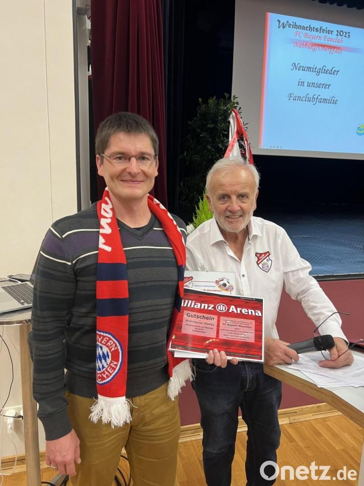 Satzungsgemäß erfolgte dann im Rahmen der Veranstaltung auch die Aufnahme des 6050. Mitglied. Bernd Hofmann konnte dazu Thomas Bodensteiner aus Moosbach offiziell in den Fanclub aufnehmen und neben einer Urkunde auch einen Gutschein für ein Bayern-Spiel aushändigen. Vorstandsmitglied Michael Babl stimmte die anwesenden Fans zwischen einem reichhaltigen Kaffee- und Kuchenbuffet mit zwei Geschichten auf Weihnachten ein und den Abschluss bildete eine reichhaltige Tombola mit vielen original Bayernartikeln und tollen Preisen. Auch ohne Thomas Müller erlebten die Fans ein unterhaltsames Programm und man freut sich schon auf den Besuch des Nationalspielers im Januar. Sobald der Termin feststeht wird er umgehend bekanntgegeben.