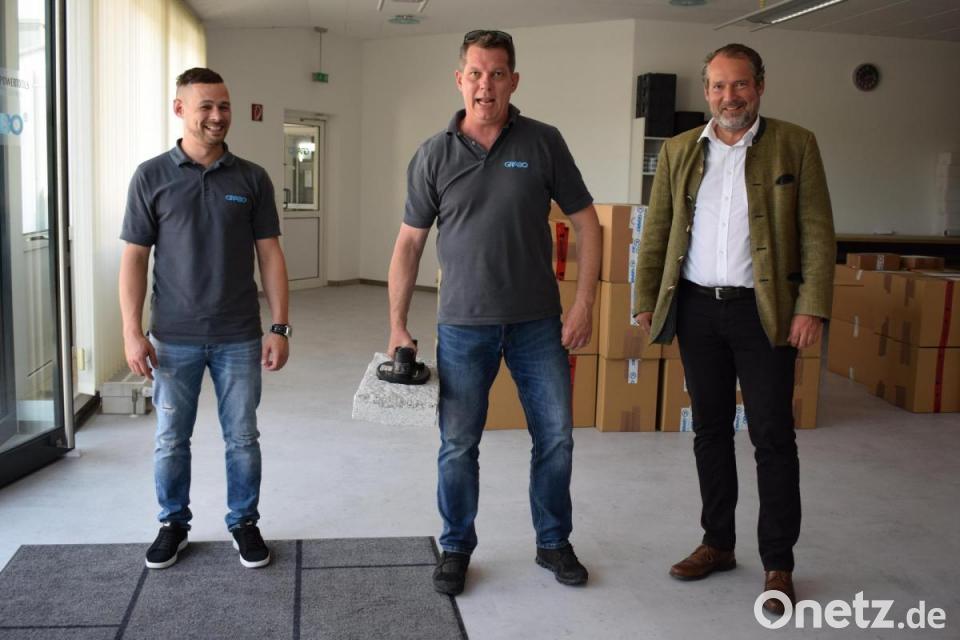 Zur Eröffnung des neuen Unternehmens war auch Bürgermeister Frank Zeitler gekommen, der dem Unternehmer und seinen Mitarbeitern großen wirtschaftlichen Erfolg wünschte. Mit Interesse verfolgte der Bürgermeister die Vorführung des Handsaugers, der voll überzeugte.