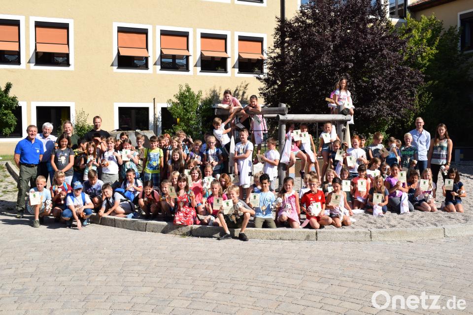 Als "wahre Waldprofis" entpuppten sich die 25 Schüler der Klasse 3a der Grundschule Nabburg. Von ihrem Lehrer Michael Eichinger wurden sie bestens vorbereitet. Mit 668 Punkten standen sie ganz oben auf der Siegertreppe. Nur sechs Punkte weniger hatte die 3a der Grundschule Pfreimd, die den zweiten Platz belegte. Begleitet von ihrer Lehrerin Julia Eibner hatten sie zur Siegerehrung das Lied vom Adler mitgebracht. Mit 650 Punkten erreichte die 3b der Grundschule Neunburg vorm Wald den dritten Platz. Ihr Lehrer Martin Fuchs hatte mit ihnen das Gedicht "Bäume im Herbst" eingeübt.