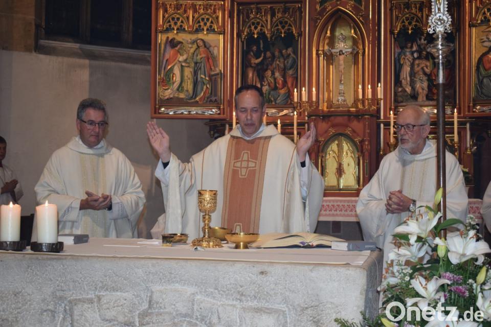 Bereits der Einzug in das Gotteshaus machte deutlich, dass heute etwas Besonderes ansteht. Alle 40 Ministranten, Stadtpfarrer Hannes Lorenz und der Ruhestandsgeistliche Gottfried Rottner begleiteten Kaplan Läßer zu seinem letzten Gottesdienst in Nabburg.