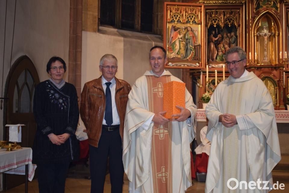 Als Erinnerung an die Kaplanzeit in Nabburg überreichten Hans Pamler und Tanja Raab, die Sprecherin des Pfarrgemeinderates, eine Figur des Kirchenpatrons. Auch Pfarrer Hannes Lorenz dankte dem Kaplan für die segensreichen zwei Jahre in Nabburg und wünschte ihm Gottes reichsten Segen für seine erste Pfarrstelle in Hemau.