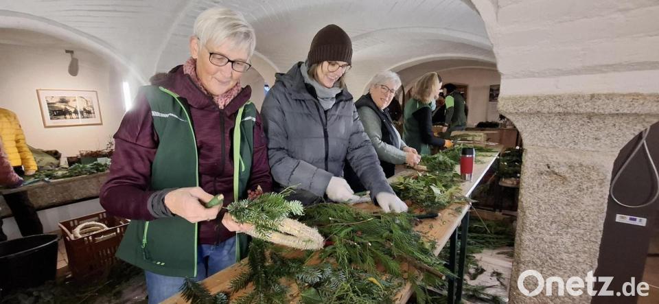 Die Frauen des Neusather Obst- und Gartenbauvereins hatten im Denkenbauernhof alle Hände voll zu tun und mussten sich beim Kränzebinden beeilen, damit alle Wünsche der Käufer erfüllt werden konnten. Der Duft von gebackenen Plätzchen im Matzhof stieg besonders den Kindern in die Nase, welche eifrig beim Anstreichen der Butterkekse mit Zuckerguss beschäftigt waren.