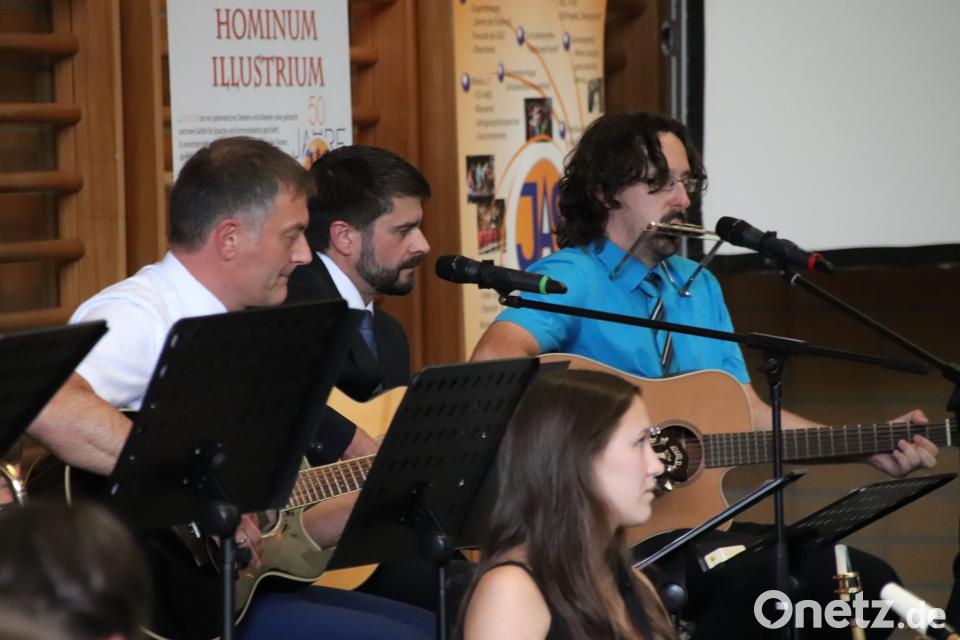 (td) Die Zusammenkunft in der Doppelsporthalle wurde musikalisch gestaltet von der Bigband des Johann-Andreas-Schmeller-Gymnasiums unter Leitung von Stefan Schindler, wobei sich Altsaxophonist Thilo Hohl und Sängerin Luisa Baumann besonders hervortaten.