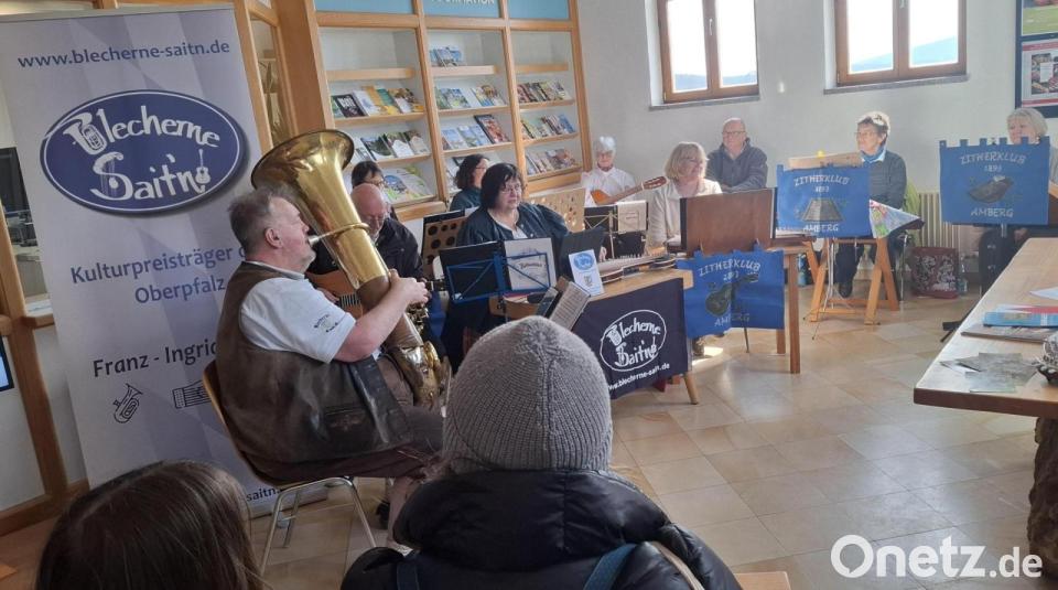 Das gesamte Areal wurde so zum Klingen gebracht. Von der Stube im Bauernhaus, über den Garten der Mühle, bis hin zum Biergarten des Wirtshauses wurden Stücke aus der Volksmusik und Klassik von „Zitherduo Schwarzer“ , „Isarwinkler Zitherduo“, „Donaurieder Zithertrio“ und den „Oberpfälzer Moidln“ gespielt. Im Eingangsbereich musizierte zudem die Gruppe "Blecherne Sait'n" aus Schnaittenbach (Landkreis Amberg-Sulzbach), Inhaber des Kulturpreises des Bezirks Oberpfalz.