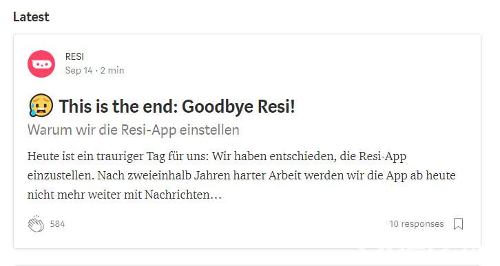 Der wohl vorerst letzte Satz der Gründer zur App: "Mach’s gut, Resi! Und danke für alles."