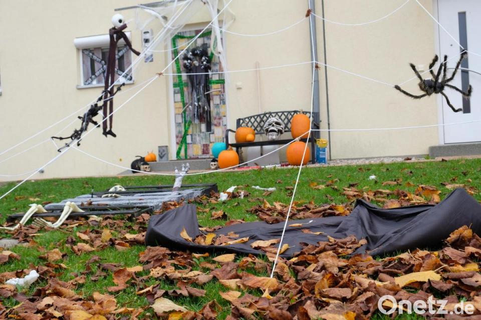 Künstlicher und kitschiger denn je schimmern aufgeblasene Geister, klappernde Totengerippe und Kürbis-Fratzen den Besuchern entgegen. Grabstellen und Totenschädel, Gruselmasken und riesige Spinnen inmitten überdimensionaler Netze verkünden vor den Wohnungen der amerikanischen Familien Tod und Elend.