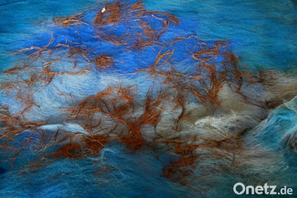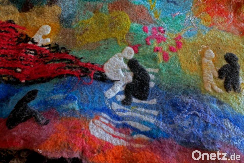 Das ist Kunst, was da bei ihr zu Hause die Wände ziert und aus verschiedenen Fasern besteht. Filzbilder gerahmt, wie zum Beispiel das vom Tirschenreuther Weihergebiet, das dem Betrachter viel Raum für eigene Entdeckungen und Interpretationen lässt. Ihr neuestes ehrgeiziges Projekt ist ein 7,50 Meter langes und 2,80 Meter hohes Vlies, das die Leidensgeschichte Jesu Christi nachempfindet und während der Europassion 2020 den Raum vor dem Foyer im Kettelerhaus zieren wird. "Seit ich weiß, dass ich das mache, habe ich mir viele Gedanken über den Begriff Passion gemacht", sagt Anita Köstler. So stehe er im katholischen Glauben für Trauer, beziehungsweise Trauerentwicklung als Prozess. Andererseits verstehe man den Begriff aber auch als Synonym für Freude - eine Passion für etwas haben. Aus dem Grund bewege sich ihr Kunstwerk auch irgendwo dazwischen. Freude und Leid, seien quasi die Eckpunkte zwischen denen das Kunstwerk angesiedelt ist.