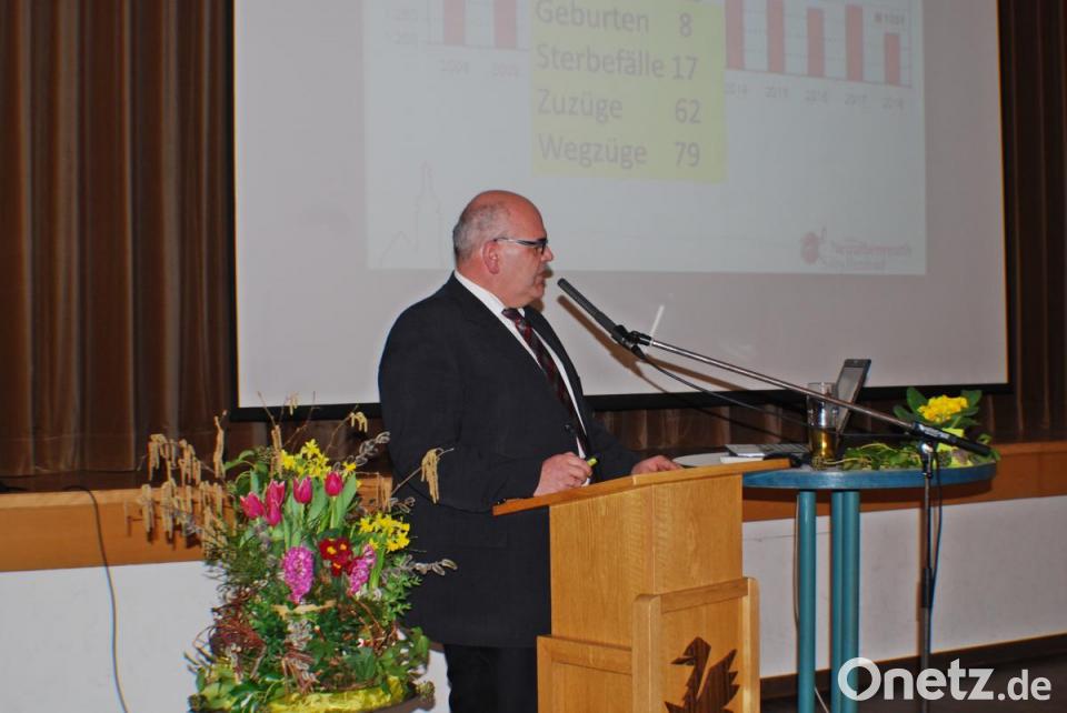 Die Einwohnerzahl bezifferte Meyer zum 30. Juni 2018 auf 1331 Einwohner: 8 Geburten standen 17 Sterbefälle gegenüber, 62 Zuzügen 79 Wegzüge. Der Bürgermeister ging auf die finanzielle Lage ein. Besonders der Vermögenshaushalt habe eine enorme Steigerung: Man habe investiert und wolle dies auch künftig.