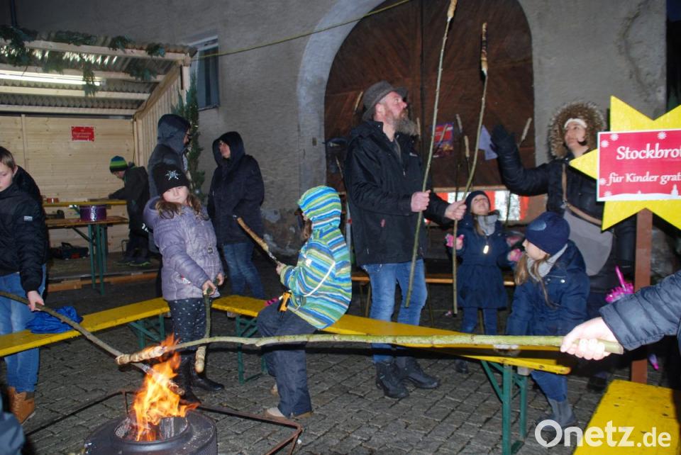 Die Damen standen dem in nichts nach und krochen in die Weihnachtswichtel-Werkstatt, um den Helfern bei ihrer Arbeit direkt über die Schulter zu blicken. Ganze Familien machten aus Schneewittchen das Märchen "Schneewittchen und die vielen Zwerge". Auch die Heilige Familie in ihrem Stall wurde durch Menschengruppen ganz neu interpretiert. Natürlich waren alle gespannt auf das neu dargestellte Märchen: Es war Aschenputtel in ihrer Küche mit vielen, vielen Tauben. Dicht umlagert waren das Stockbrot-Feuer und die Bürgermeister-Werkstatt, wo man sich für eine Spende einen Stern oder einen Weihnachtsbaum aus Holz herstellen lassen konnte.