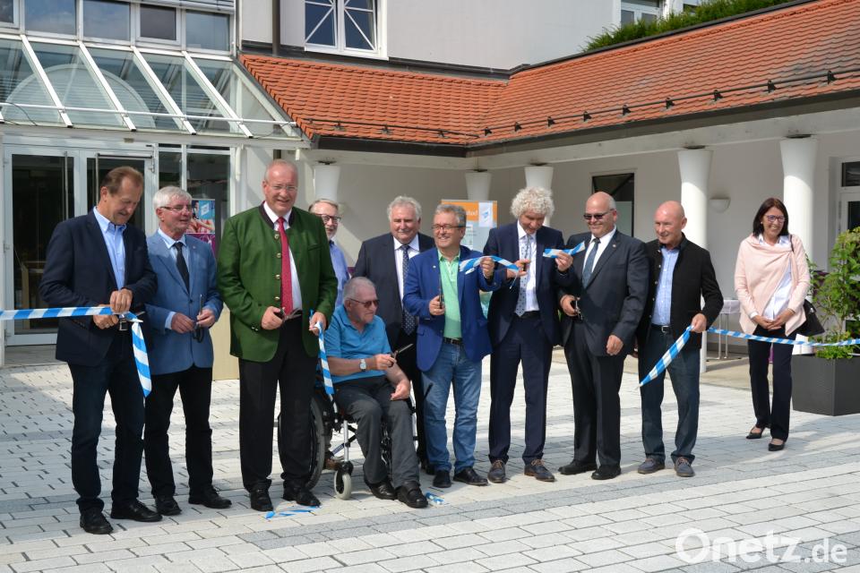 Der Kurpark oberhalb des Bades wurde mit einer Investsumme von 1,6 Millionen Euro im Zeitraum 2014 bis 2015 neu gestaltet: Ein optimierter Bodenbelag, Ruheplätze, eine Pergola aus Flossenbürger Granit und ein Vital-Parcours für die Sportler. Passend dazu Hinweisschilder für effektives Nordic Walking und Fitnessübungen. Ein Übersichtsplan mit diversen Strecken durch Kurpark und Gemeindegebiet verrät sogar das Höhenprofil. Direkt daneben der Gingko-Baum, in der chinesischen Philosophie Symbol für Sanftheit und Lebenskraft. Den Höhepunkt der Flora finden Besucher in den drei Themengärten. "Rosen-, Kräuter-, und Bauerngarten waren zwar schon seit Eröffnung hier - aber in einem Zustand, der den Namen nicht mehr verdiente. Man spürt jetzt die Lebendigkeit des Ortes: Schmetterlinge und Bienen toben sich an den bunten Blumen aus." Landschaftsarchitekt Karl-Heinz Birkner hat die Neugestaltung des Parks geplant, während Landschaftsarchitektin Gisela Fanck-Reiter die Promenade verschönerte. "Ein großes Anliegen war auch der Ausbau der Parkplätze", erklärte Geiger: 92 zusätzliche Pkw-Stellplätze, eine optimierte Parkplatzbeleuchtung und ein futuristischer Außenaufzug erleichtern nun das Ankommen. "Die Barrierefreiheit ist somit hervorragend erfüllt und auch architektonisch ist dieses Bauwerk einmalig", bekräftigte Bezirkstagspräsident Franz Löffler. "Neben diesem Beitrag zur Inklusion sind auch zwei E-Säulen gleich vorne am Parkplatz in Planung", erläuterte Gerhard Geiger. Nach der Inbetriebnahme des Kurhotels Pyramide im Dezember 2015, ist auch der Bademantel-Gang verlängert worden. Dadurch belebten Hotelgäste die Kurpromenade an der Südseite zunehmend, so dass auch hier eine kundenorientierte Gestaltung notwendig war. "Die Promenade war ursprünglich in barockem Stil gehalten, der allerdings für Menschen, die in das Grün eintauchen möchten, monoton ist", erläuterte Fanck-Reiter. Eine Zick-Zack-Wegeführung mit Schattenplätzen garantiert nun Abwechslung. "50 verschiedene Pflanzenarten je nach Saison zieren jetzt die Promenade. Die Gäste kennen die meisten davon gar nicht und finden so Anregung für den eigenen Garten." Zusammen mit einer kleinen Brunnenanlage in der Mitte betrug die Investition dafür 400 000 Euro und wurde nach einem Jahr im Frühjahr 2018 fertiggestellt. (plym)