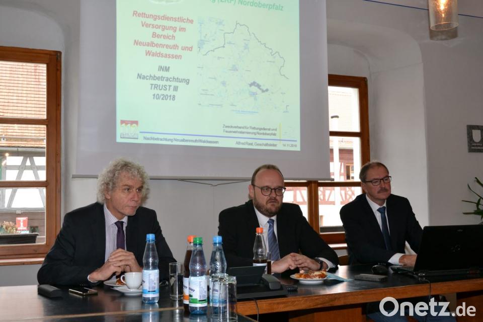 "Als Endergebnis wird es ein Resultat geben, mit dem wir alle zufrieden sein können", erklärte der Neustädter Landrat Andreas Meier, Vorsitzender des Zweckverbands für Rettungsdienst und Feuerwehr-Alarmierung Nordoberpfalz: Im Rathaus Neualbenreuth präsentierte Geschäftsführer Alfred Rast das Ergebnis ein weiteres Fachgutachtens des Instituts für Notfallmedizin und Medizinmanagement (INM). "Das Gutachten ist ganz aktuell", so Rast über die Veröffentlichung des 220-seitigen Papiers am 17. Oktober. Dabei wehrte sich auch der Geschäftsführer gegen Vorwürfe in sozialen Medien, der Zweckverband halte Zahlen unter Verschluss.