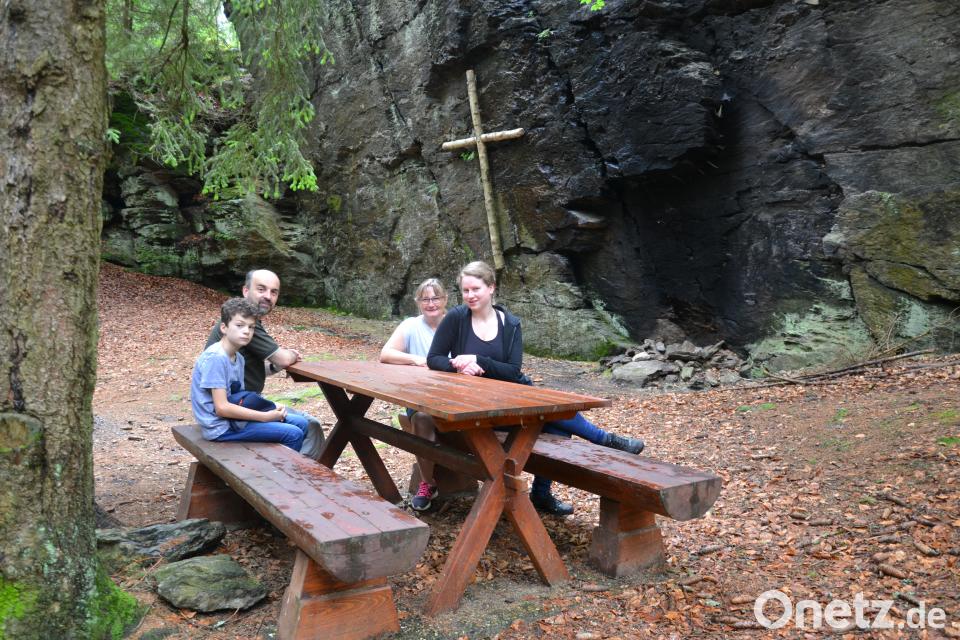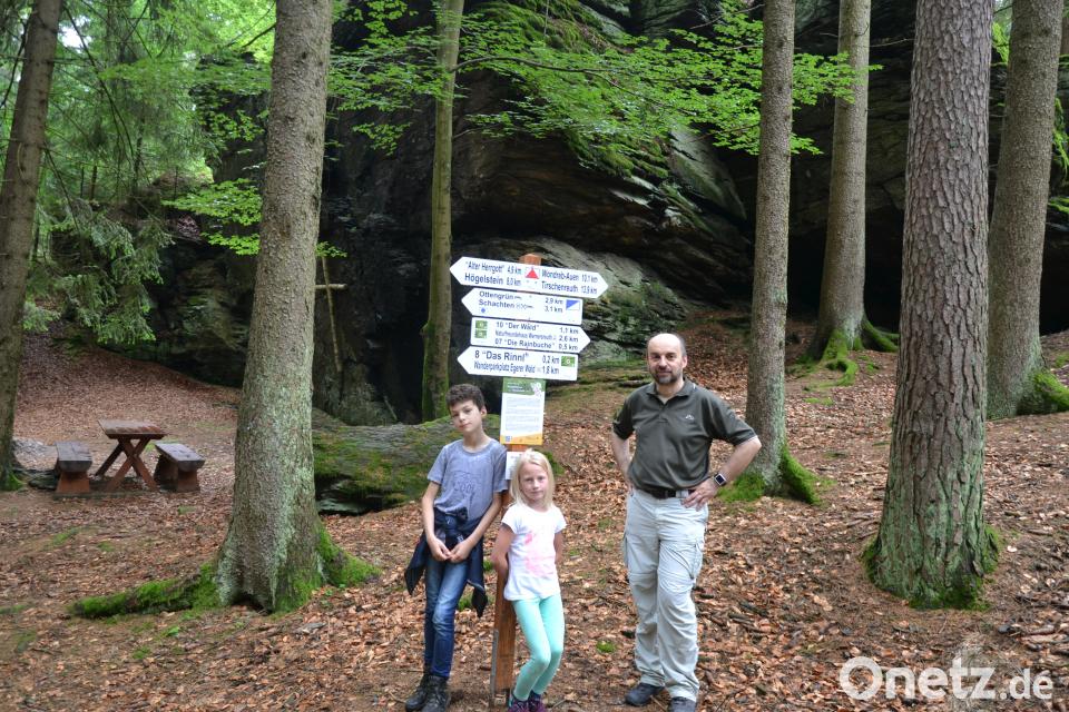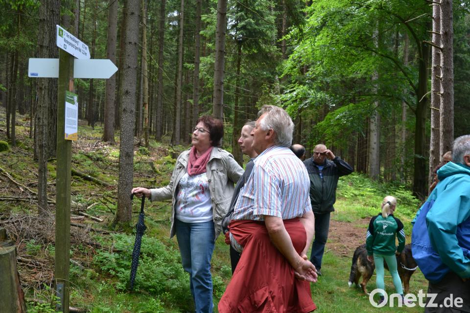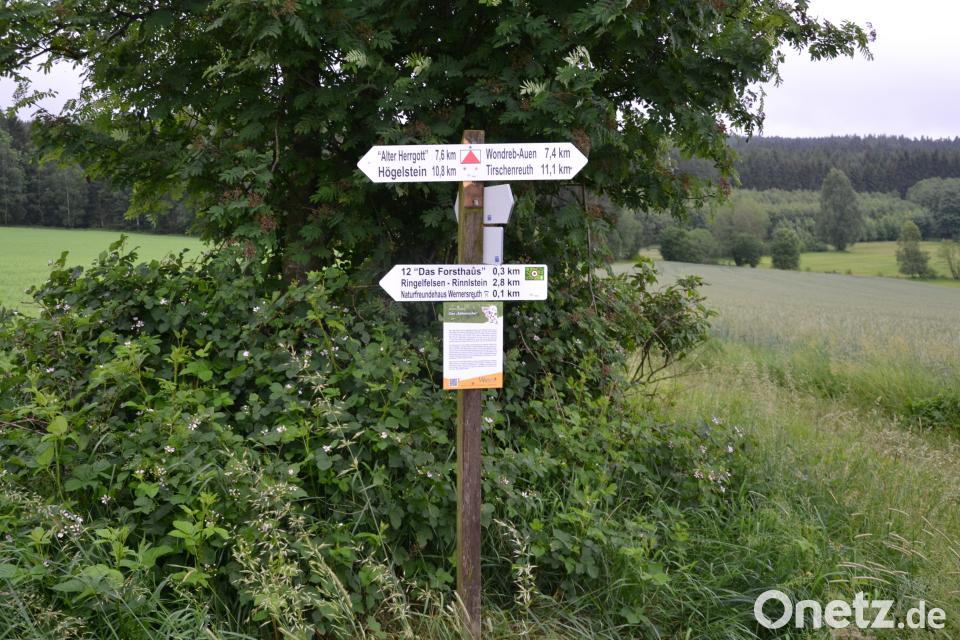 Die neuneinhalb Kilometer lange Wanderung zum Ringelfelsen startet am Naturfreundehaus Wernersreuth, das etwas abgelegen im Tal in kurzer Entfernung beim gelichnamigen Dorf liegt. Der Startpunkt befindet sich bereits mitten in der Natur. Der Rinnlstein-Wanderweg wurde erst am 1. Juni dieses Jahres eröffnet. Zusammen mit Wegepaten Michael Rückl, der den Weg hauptsächlich erschlossen und organisiert hat, wandern etwa zwei Dutzend Abenteurer los. Angst, sich im Wald zu verlaufen, müssen sie nicht haben. Neuangebrachte Schilder und Wegweiser, ein brauner Kreis mit Umrandung und Sonnenstrahlen, zeigen der Gruppe den Weg. Nur die ersten paar Meter verlaufen auf freier Fläche, dann verschluckt der Wald die Wanderer.