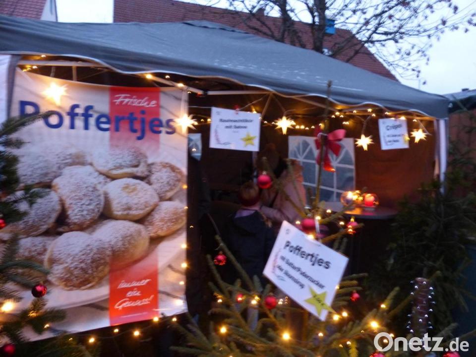 Neben der Tombola boten die Siedler zum ersten Mal Schichtfleisch im Duch Oven an. Neu waren auch „Poffertjes“ aus Holland. Das leckere Gebäck, ähnlich den Muffins, fand besonders bei den Kindern reges Interesse, ebenso die Crêpes. Außerdem gab es Bratwürste, warme Würste mit Weihnachtsbier, eine „Schnaps-Bude“ oder Feuerzangenbowle. Die Neudorfer „Minis“ boten Wundertüten an.