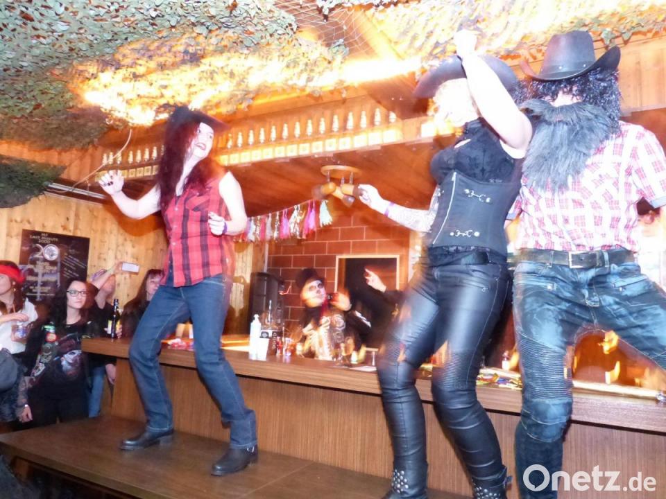 Die zahlreichen Besucher hatten nicht allzu lange Zeit, um sich mit Benzingesprächen den Abend zu versüßen. In der überfüllten Bar marschierten im Kampfanzug die „Coyote Ugly Girls“ ein. Schnell entledigten sie sich der Tarnkleidung und tanzten vor der Bar in scharfen Cowgirl-Klamotten. Die Mädels zeigten sich gegenüber den Gästen großzügig. Schnaps aus der Spritze, aus der Flasche und weiteren Behältnissen gab es gratis für die durstigen Kehlen, die dankend annahmen.
