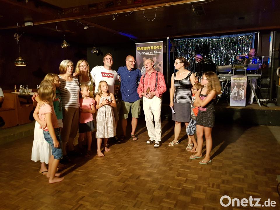 Lustig, wie man ihn kennt, begrüßte der Jubilar die Gäste zur Geburtstagsfeier. Kinder und Enkel gaben humorvoll und musikalisch einen Einblick über sein Leben. Sie zeichneten ihm mit einem Pokal zum schönsten Wirtshaus von Neudorf aus. Die Band „Sunny Boys“, die schon vor Jahrzehnten im Tanzcafé spielten, sorgten für Stimmung. Das obligatorische Tänzchen mit Ehefrau Inge fehlte nicht.
