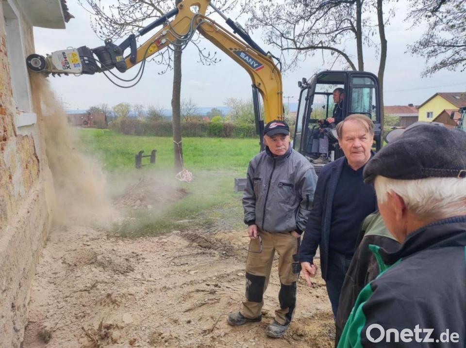 Die Neudorfer haben sich bei der Versammlung nicht nur darauf geeinigt, das Leichenhaus mit viel Eigenleistung zu sanieren, sie fackelten auch nicht lange und riefen gleich zum Arbeitsdienst auf. Die Maschinen standen bereits vor Ort.Die Firma Hydraulik-Paule stellte eine Putzfräse, inklusive Minibagger, zur Verfügung. Auch Gartenbau Kick stellte Geräte zur Verfügung.