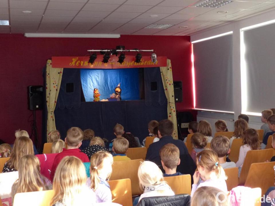 Schön für die Kinder war, dass sie von Anfang an in das Stück eingebunden wurden, was ihnen sichtlich und hörbar Spaß machte. In der großen Pause nutzen die Kinder das schöne Herbstwetter und vergnügten sich auf dem angrenzenden Kinderspielplatz.