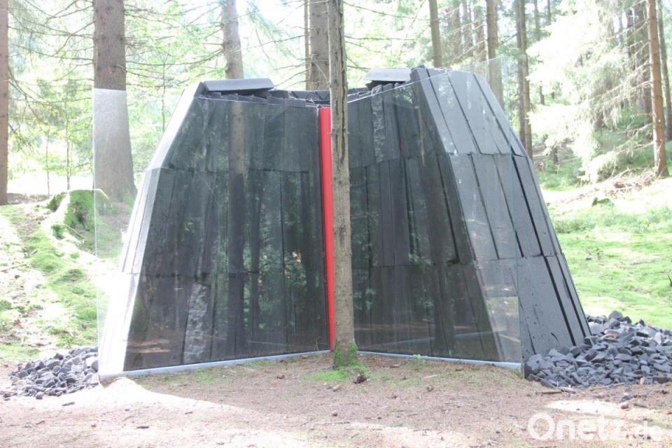 Zum Gesamtprojekt gehört auch der Informationspavillon entlang des Parkplatzes an der Kreisstraße NEW 32 im Ortsteil Hammermühle mit Sprüchen Schönwerths. Ein dickes Lob geht unter anderem an Diplom-Ingenieur und Architekt Günter Naumann. „Er begleitet die Maßnahme mit Herzblut“, würdigt Johann Walbrunn das Engagement des Regensburgers.