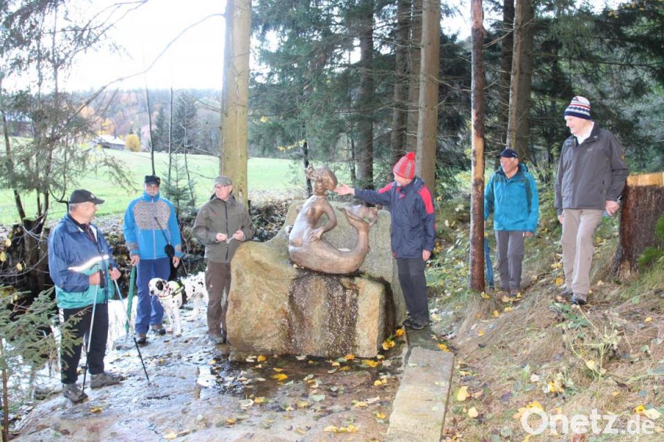 Und genau dieses Wasser gehört zu Neuenhammer. Schließlich führt der Sagen- und Märchenweg entlang des Zottbachs auf dem Spazierweg Schönwerths nach Pleystein und beginnt mitten in der Ortschaft mit der Skulptur „Im Rachen des Wassermanns“. Diese hat Günter Mauermann aus Weiden angefertigt. Der Einstieg in den Wanderweg ist dann am Waldbeginn in Richtung Prollermühle mit der Nixe, die auf Erlösung gewartet hätte. Karl Fröhlich aus Altenhammer hat ihre schwere Badewanne angefertigt. „Des Windes Heulen“ heißt die Skulptur aus Bronze von Engelbert Süß aus Pfreimd.