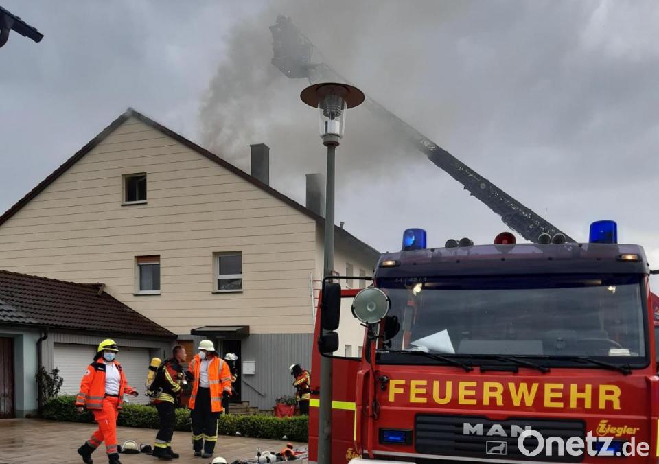 Ein weiterer Nachbar eilte, um die älteren Personen im Gebäude aufmerksam zu machen, und geleitete eine Dame nach draußen. Als drei Minuten nach Feuerwehralarm mit dem "Helfer vor Ort" die erste Einsatzkraft eintraf, drang bereits dichter Rauch aus dem Dachstuhl.