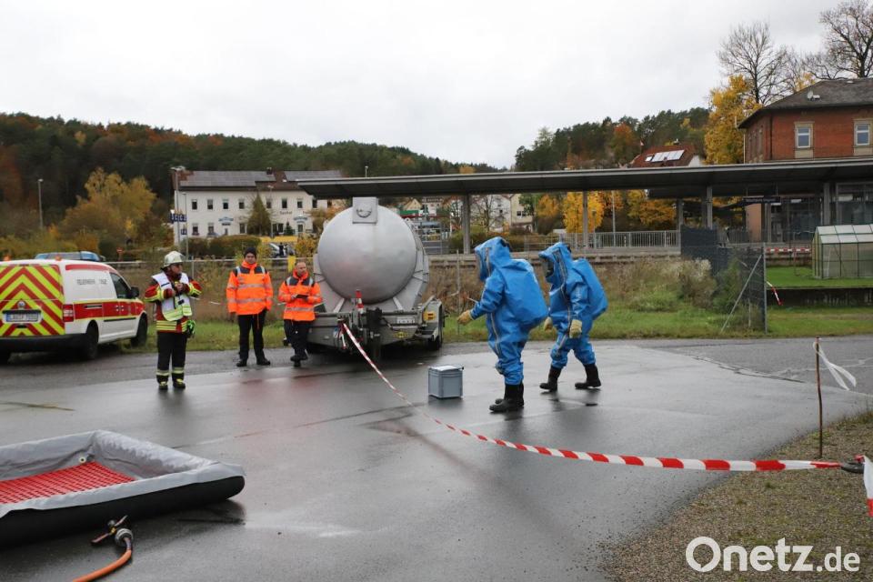 Beteiligt waren laut offizieller Mitteilung die Feuerwehren aus Neuhaus a. d. Pegnitz, Hersbruck und Auerbach sowie Mitglieder der Kreisbrandinspektion und die Unterstützungsgruppe Örtliche Einsatzleitung (UG-ÖEL) des Landkreises Nürnberger Land. Die Feuerwehr Neuhaus begann sofort mit Absperrmaßnahmen und Erkundungen unter Schutzmaßnahmen. Parallel wurde eine Notdekontamination errichtet. Der Einsatzleiter gliederte den Einsatz in Abschnitte, um die Aufgaben strukturiert abzuarbeiten.