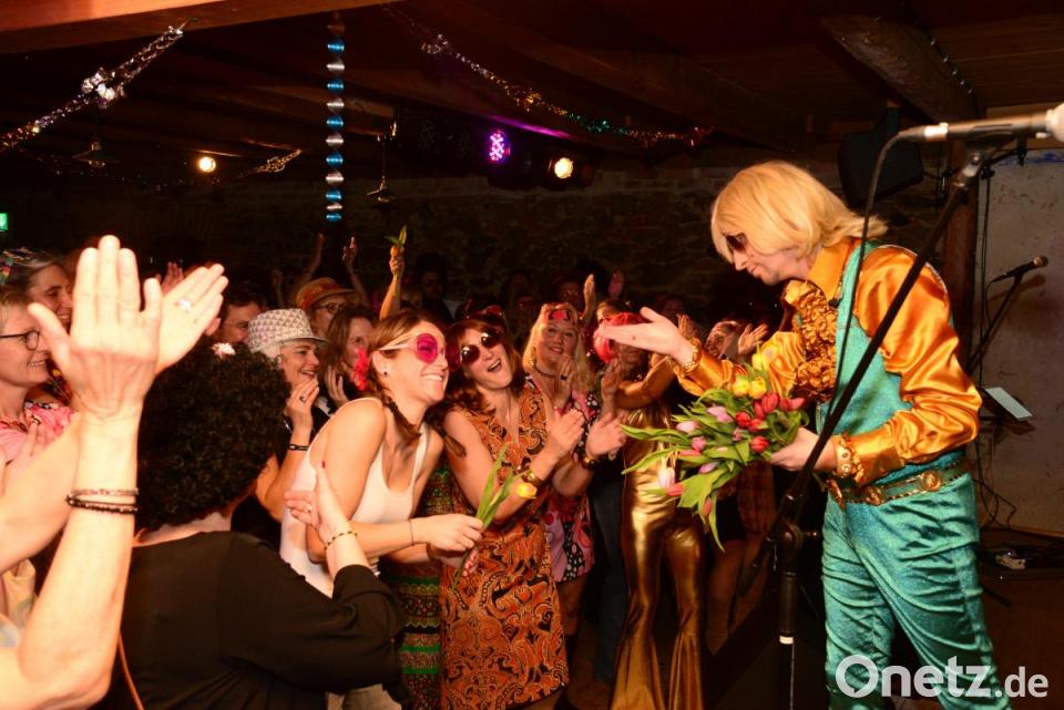 „Kitti“ Fütterer vom Schafferhof weiß das, will aber auch, dass sich seine Gäste wohlfühlen und zur Musik, wenn gewünscht, auch tanzen können. Deshalb war die Zahl der Fans der "Golden Glitter Band" auf 200 begrenzt. Und diese Besucher kamen dann nicht nur absolut pünktlich, um nahe an der Bühne zu sein, sondern in Vielzahl auch im Outfit der Jahre, in denen die Musik der "Golden Glitter Band" mit den Originalsängern in den Musikboxen erklang.