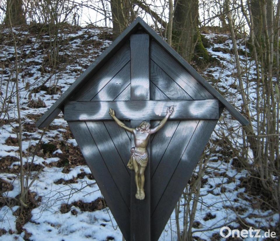 Besonders bitter, ist die Verunstaltung eines Feldkreuzes. Vor gut 30 Jahren hat die Familie Schönberger dieses Kreuz mit einem Metallkorpus zur Ehre Gottes auf dem Dietersberg errichtet. Seitdem pflegte der Neuhauser Messner die Anlage neben einer Sitzbank. Auch wenn sich der Schaden wieder reparieren lässt, stuft die Familie Schönberger das Ganze als einen Akt der Blasphemie ein. Der Vorfall wurde der Polizeidienststelle Neustadt/WN gemeldet.