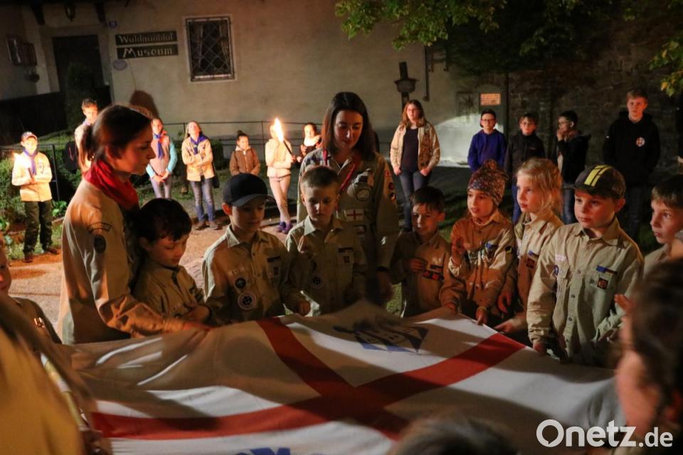 Zuvor stand einer Wanderung zur Burg Neuhaus auf dem Programm. Dort legte die Sippe "Wolf" ihr Wölflingsversprechen ab. Die 15 Mädchen und Buben im Alter von 7 bis 8 Jahren unter der Leitung von Julia Franz, Lena Müller und Simon Schönberger waren sichtlich aufgeregt. Zurück an der Hütte sangen und spielten alle oder aßen Stockbrot am Lagerfeuer.