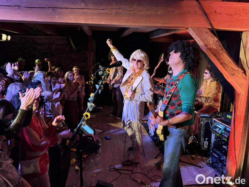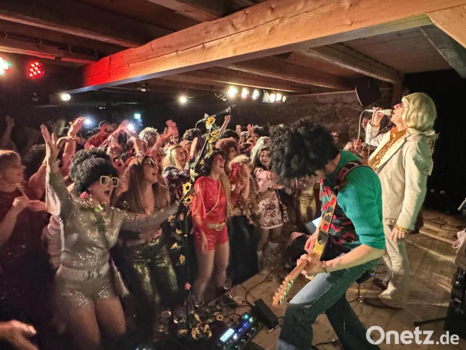 Maxikleider mit Blumenmuster, Schlaghosen, Haarbänder, Afro-Perücken, Sonnenbrillen: Wer am vergangenen Donnerstag- und Freitagabend den Schafferhof besuchte, wähnte sich in einer Zeitmaschine zurück in die siebziger Jahre. Denn beinahe jede Besucherin und jeder Besucher hatte sich perfekt für den Auftritt der „Golden Glitter Band“ eingekleidet. Am Freitag war der Schafferhof restlos ausverkauft. Einen Tag zuvor, beim Frauenfasching, war die Scheune zwar nicht ganz voll besetzt, doch dafür waren die zu rund 80 Prozent anwesenden Frauen deutlich lauter.