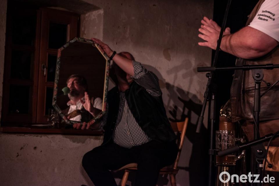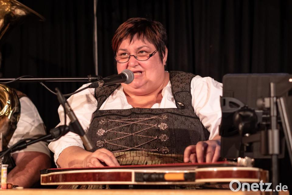 Aber natürlich steht er nicht alleine auf der Bühne. Das Programm mit dem treffenden Namen „Zither meets Louis Armstrong“ funktioniert nur durch das Zusammen- und Wechselspiel aller Künstler. So führt der Mundartdichter und Kabarettist Thumann als Moderator durch den Abend und baut seine kurzen Gedichte und Geschichten über die Oberpfalz und die Oberpfälzer perfekt um die Musikstücke herum auf. Die „Blechernen Sait’n“ selbst sind aber nicht nur Ingrid, die neben dem Singen auch Zither spielt, und Franz, der nicht nur stimmgewaltig wie Louis Armstrong daherkommt, sondern auch noch der Tuba sanfte Töne entlockt. Sie werden zudem von Sepp Donhauser unterstützt, der mit seinem Gitarrenspiel und Gesang die beiden ergänzt und auch solo brilliert.