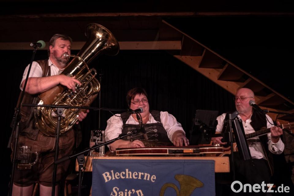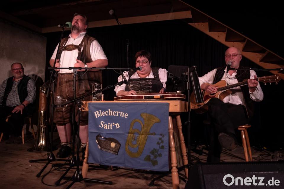 Wenn die „Blechernen Sait’n“ dann eines ihrer selbstgeschriebenen Couplets anstimmen, kommt die gesamte musikalische und stimmliche Kraft zu tragen. Der Rock-’n’-Roll-Hit „Hound Dog“ wird da ganz locker zu „Hot Dog“, die doch kein Mensch essen kann und „Down by the river side“ wird, ganz oberpfälzisch, zu „I wuil ins Wirtshaus gäj“.