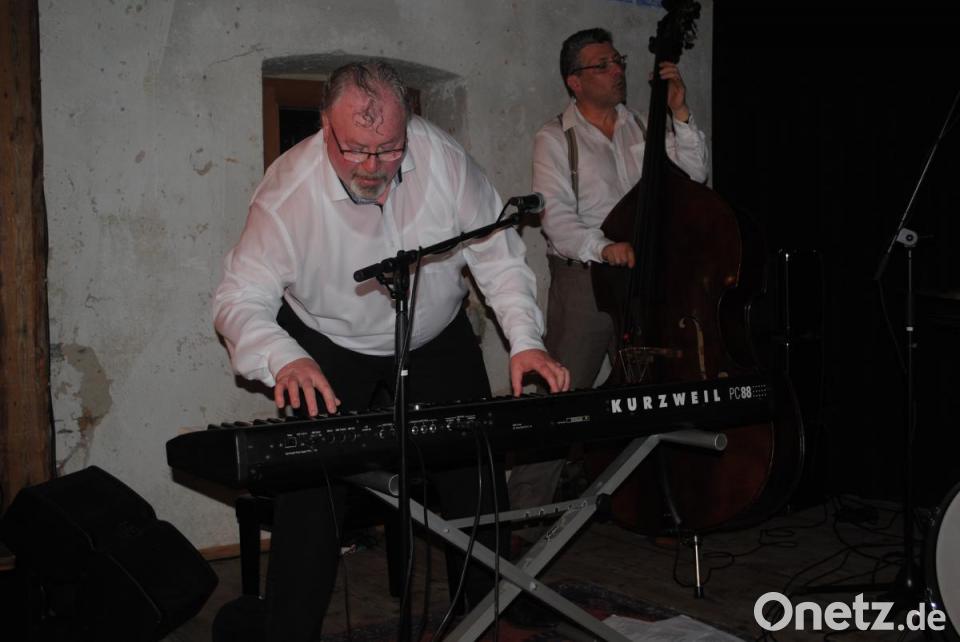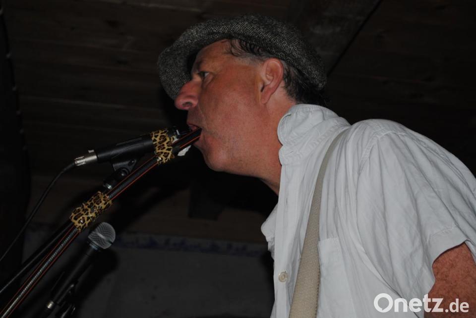 Schneider ist im Schafferhof fast zuhause. Nicht nur als "Wild Bluesman", sondern auch, wie seine Fans wissen, als "Stimulator". Seine Vielseitigkeit hat schon viele Tourneen und CDs erzeugt. Die neueste von "The Wild Bluesmen", die CD "Two Nights", war auch Teil des Programms. Und kaum war als zweiter Hit "Boogie in the Barrelhouse" angestimmt, tanzten schon die Ersten auf der eigens frei gehaltenen Tanzfläche. Es war mitreißend zu beobachten, wie Steve seine Finger über die Tasten seines Pianos rasen ließ, wie er hämmerte und gleichzeitig mit rot besockten Füßen darunter den Takt stampfte. Schwitzend griff er nach dem Zoiglbier. "Hmmm, lecker", ließ er genießerisch verlauten und stimmte ein etwas langsameres Stück an. Die "Groovy little Mama" oder der "Cat outta the Bag-Blues" entführten das Publikum in den Blueshimmel, aus dem einen nur der "Big Man Boogie" als Solostück von "Mr. Brexit" Steve reißen konnte.