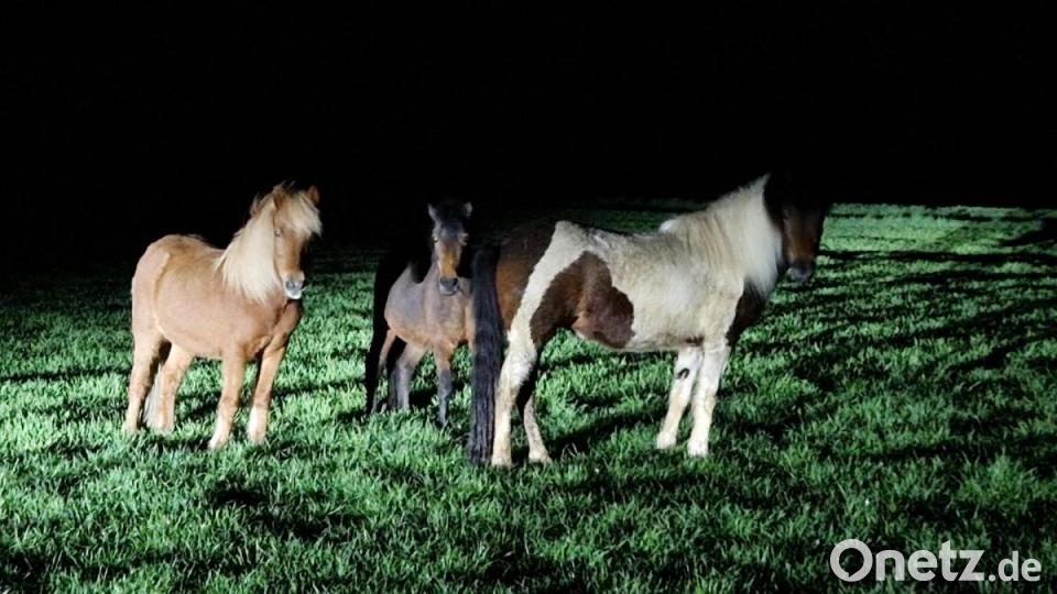 "Die Pferde konnten dann unter Zuhilfenahme diverser Leckereien gehalftert werden. Ein Versuch, sie in einen Pferdeanhänger zu verladen, scheiterte jedoch am starken Willen der Vierbeiner", teilte der Neunburger Dienststellenleiter Markus Schmitt mit. So mussten die Beamten zur späten Stunde einen etwa sieben Kilometer langen Fußmarsch zum Reiterhof von Jürgen und Birgit Vetter antreten, der nach drei Stunden erreicht war. Dort wurden die drei Ponys untergestellt und mit frischem Heu und Stroh versorgt. Tochter Selina hatte die beiden Polizisten bereits auf dem Fußmarsch unterstützt.